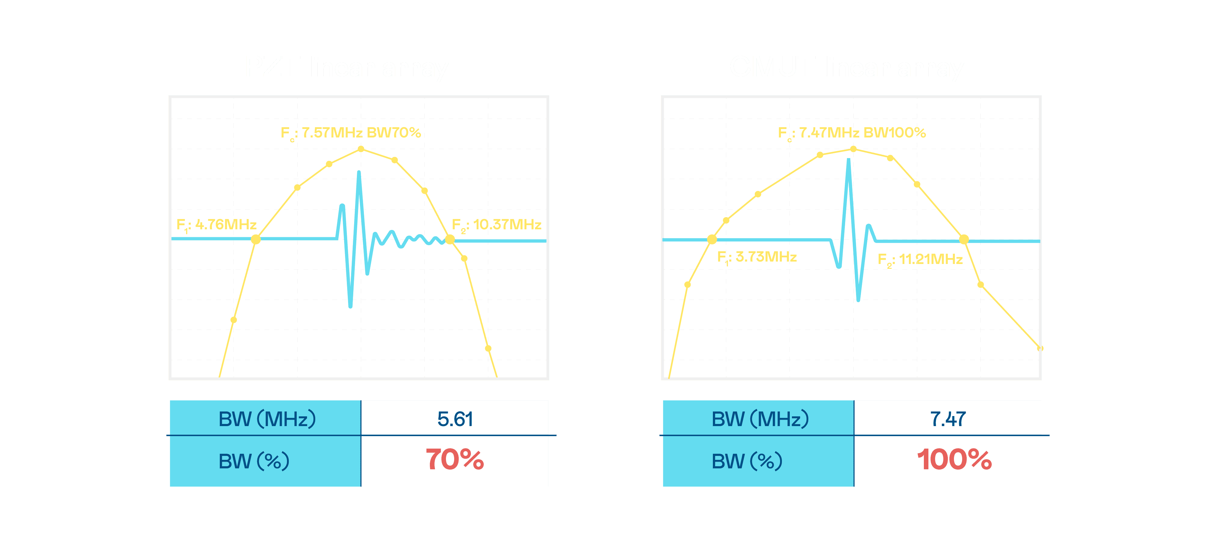 超音波影像的解析度高低,,首先取决于探头能发出的讯号频宽。。OBPay CMUT 可提供高清晰的超音波讯号,,提供高频宽、、、、高灵敏度、、影像纹理细节更高的超音波影像,,,,协助医护人员缩短影像判读时间及利用精准的医疗影像进行诊断。。。